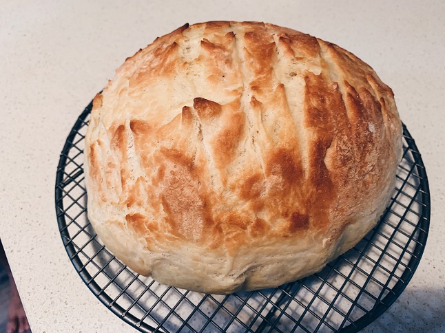 Back in January we were up in Queensland and a friend of our made us homemade bread to go with our dinner and it was beyond delicious, I begged her to give me the recipe! I made it as soon as we landed home to go with our dinner one night and it turned out perfectly. This goes perfectly with my super easy homemade pumpkin soup recipe.
